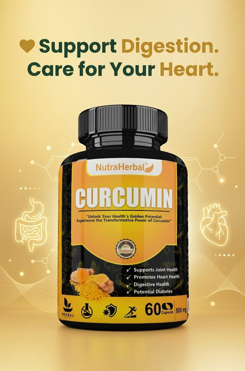 NutraHerbal Curcumin Capsules are formulated using premium-quality turmeric extract standardized to high curcuminoid content. Curcumin is known as the golden compound of turmeric, valued for its powerful antioxidant and anti-inflammatory properties.