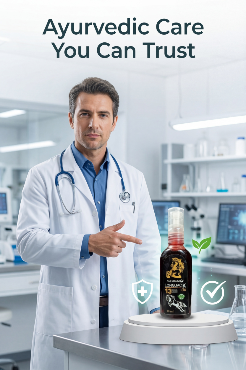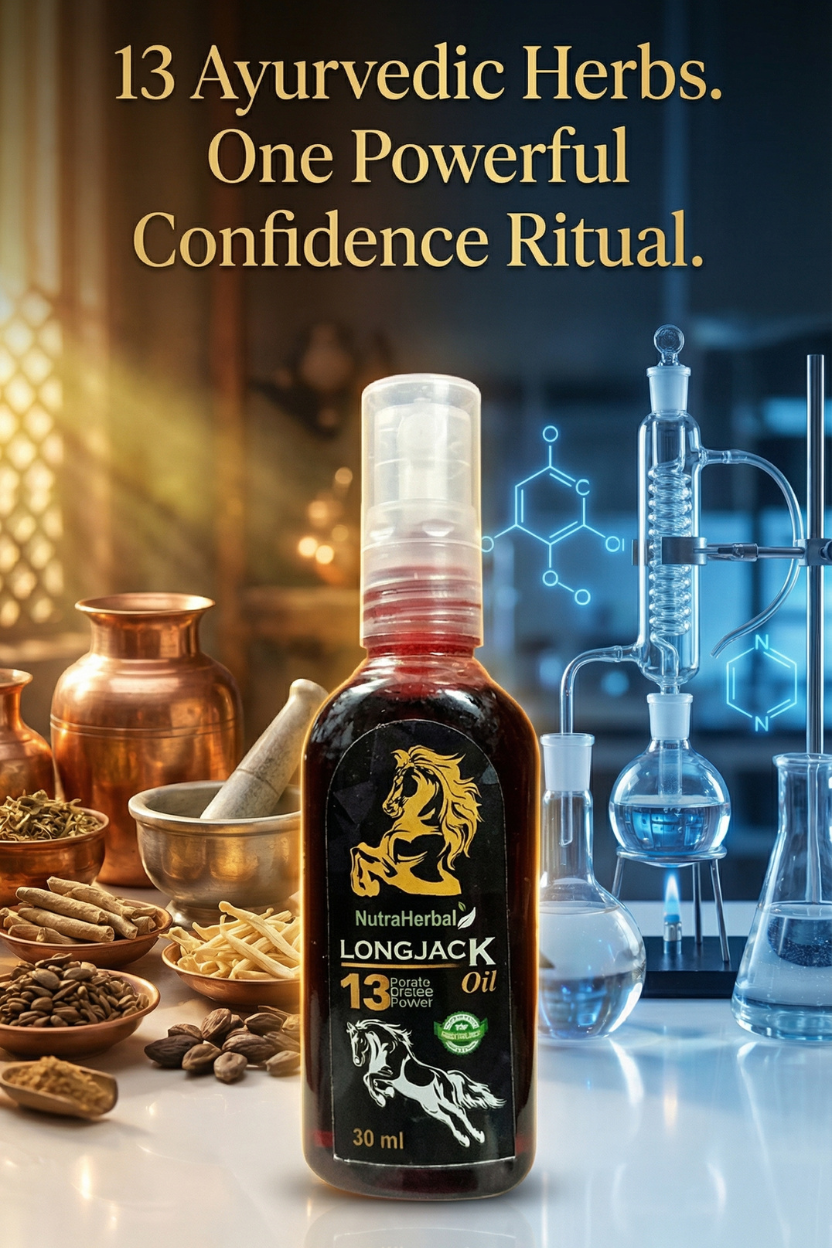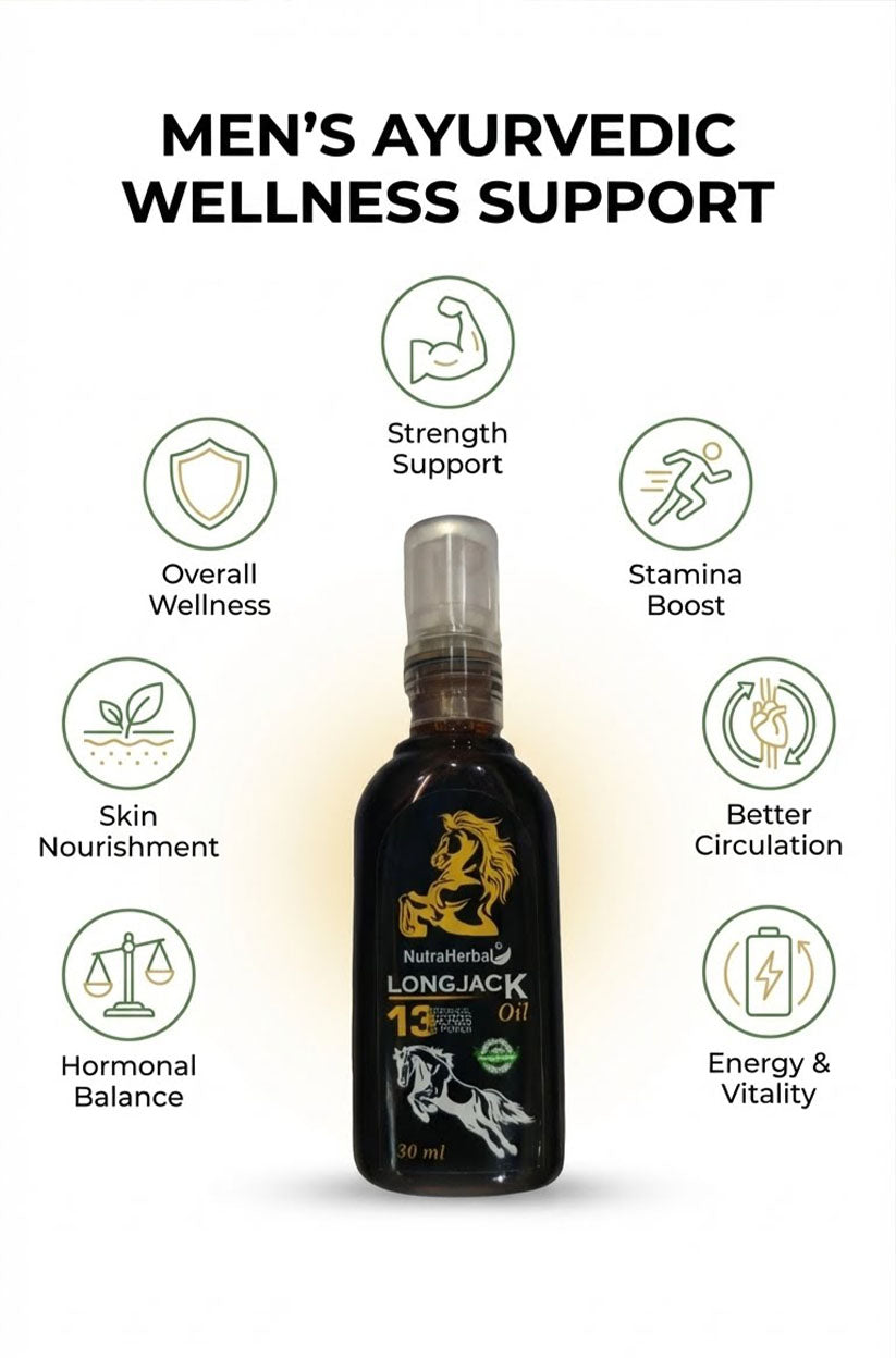 NutraHerbal Longjack Oil is a premium herbal massage oil for men, specially formulated with Longjack extract and 13 potent Ayurvedic herbs. This powerful blend helps support strength, stamina, firmness, and confidence naturally.