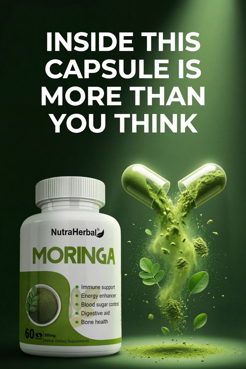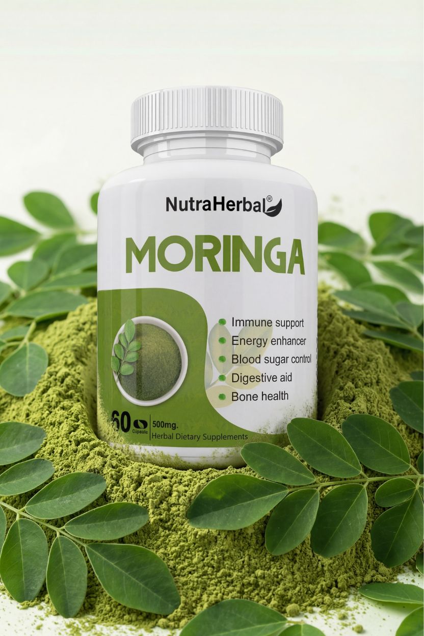 NutraHerbal Moringa Capsules are a premium Ayurvedic dietary supplement made from 100% pure Moringa Oleifera leaf extract, carefully processed to retain maximum nutrients. Moringa is one of nature’s most powerful superfoods, packed with vitamins A, C, E, calcium, iron, potassium, amino acids, and antioxidants.
