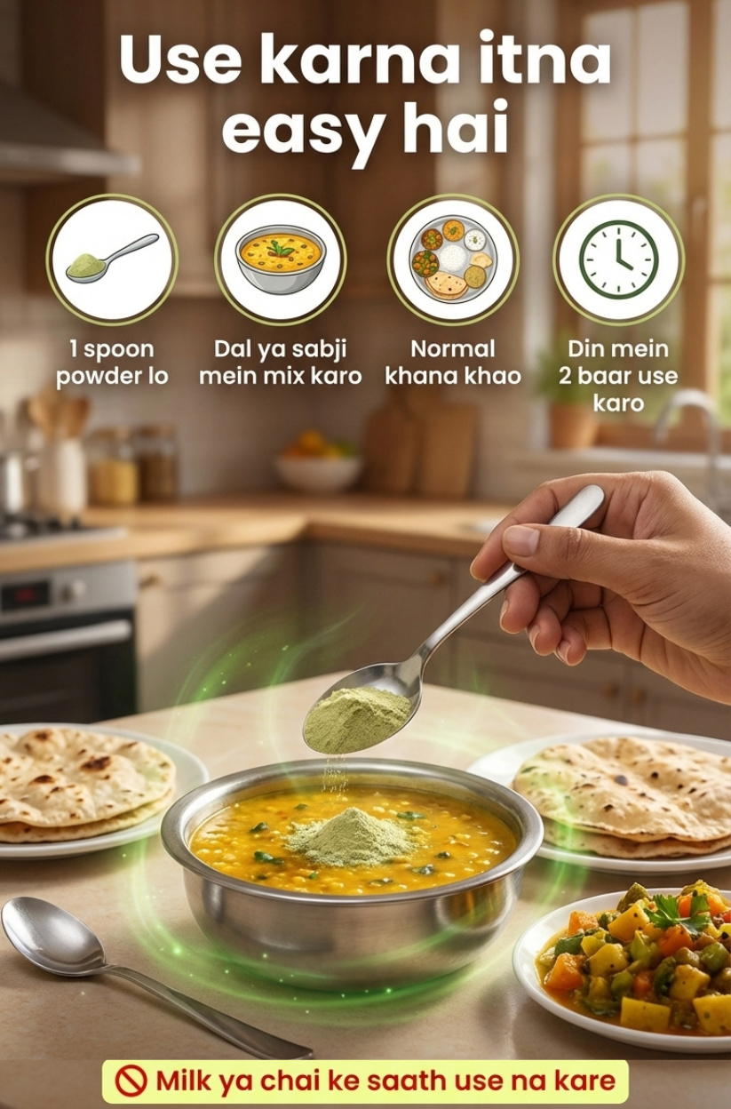 Powder ko meal, sabji ya dal me achhi tarah mix karein.