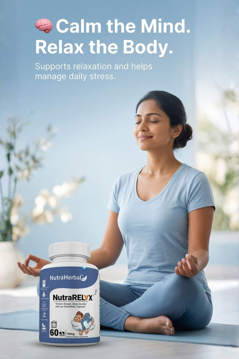 This herbal dietary supplement supports the nervous system, reduces restlessness, and helps manage stress levels. Regular use of NutraHerbal Nutra Relax Capsule helps improve sleep quality, supports emotional balance, and promotes overall mental wellness.