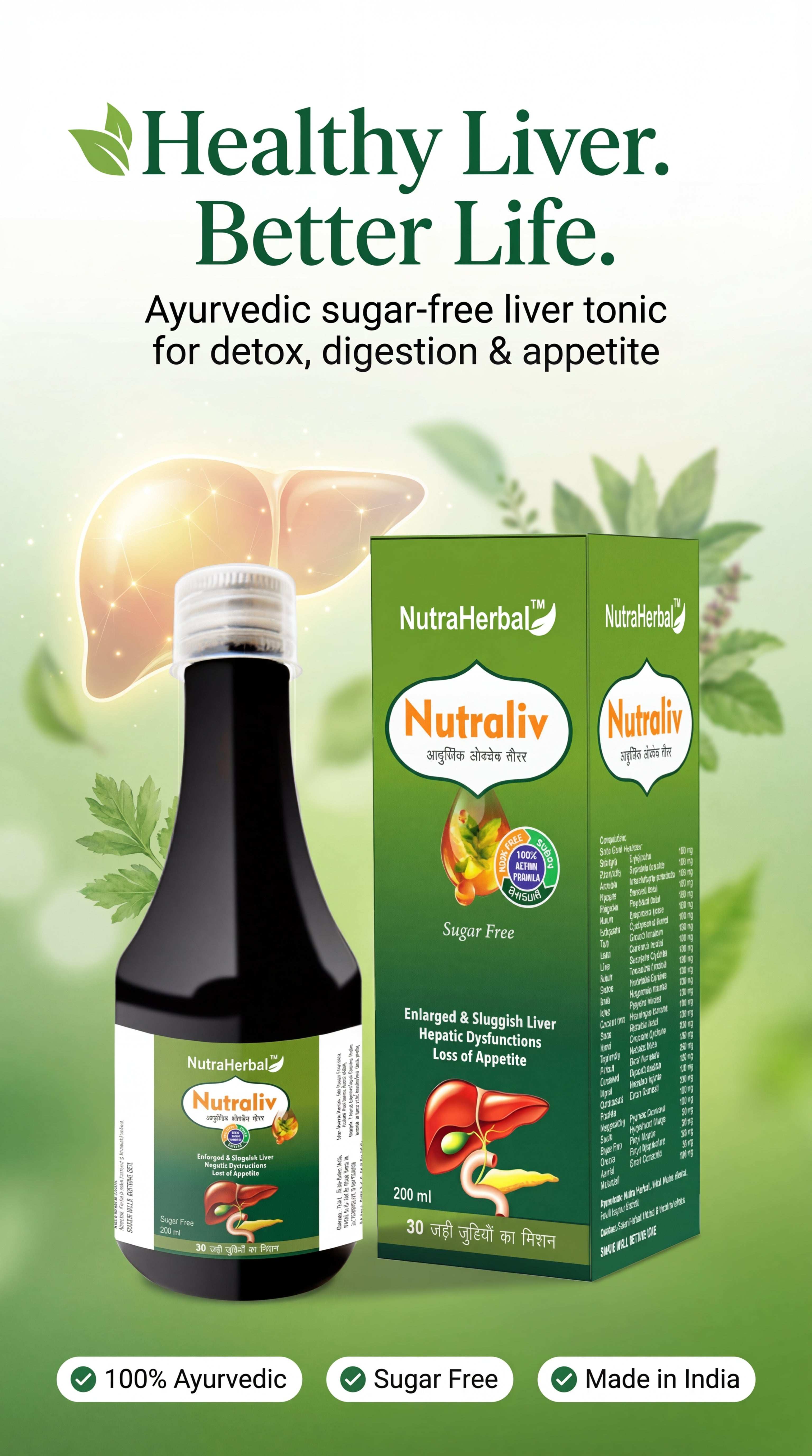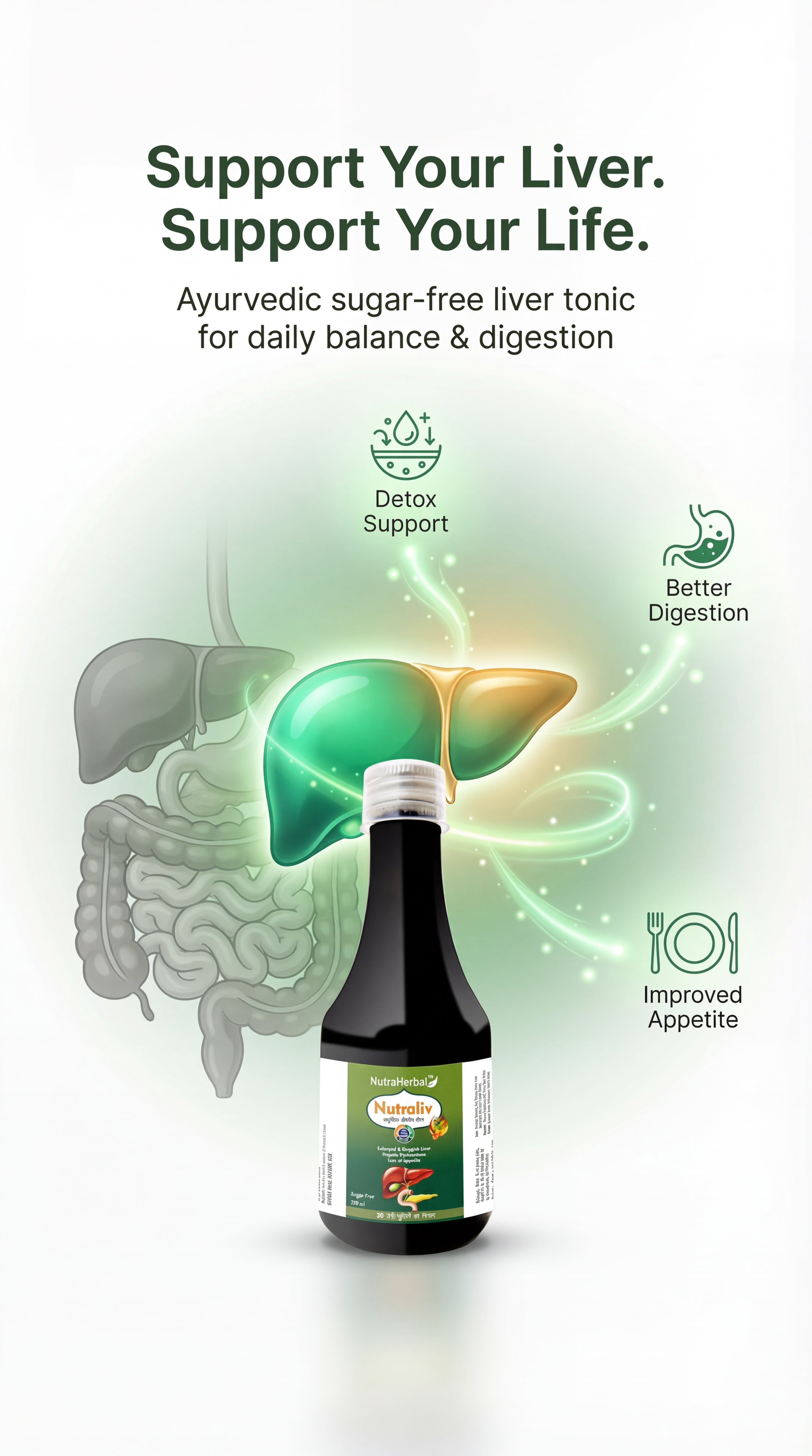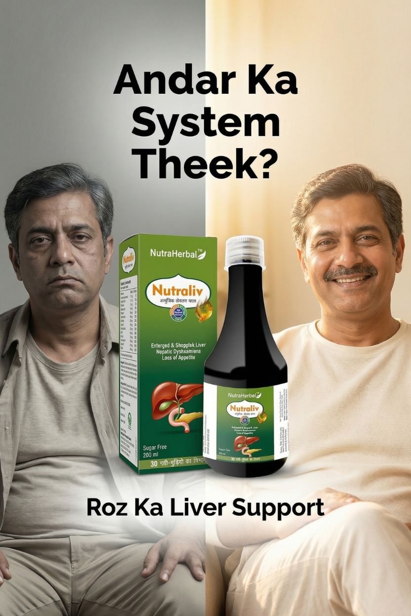NutraHerbal Nutraliv Syrup is a premium Ayurvedic liver tonic designed to support healthy liver function, detoxification, and digestion. The liver plays a vital role in metabolism, detox, and overall wellness. Modern lifestyle, oily food, stress, alcohol, and medications can overload the liver, leading to sluggishness, poor digestion, and loss of appetite.