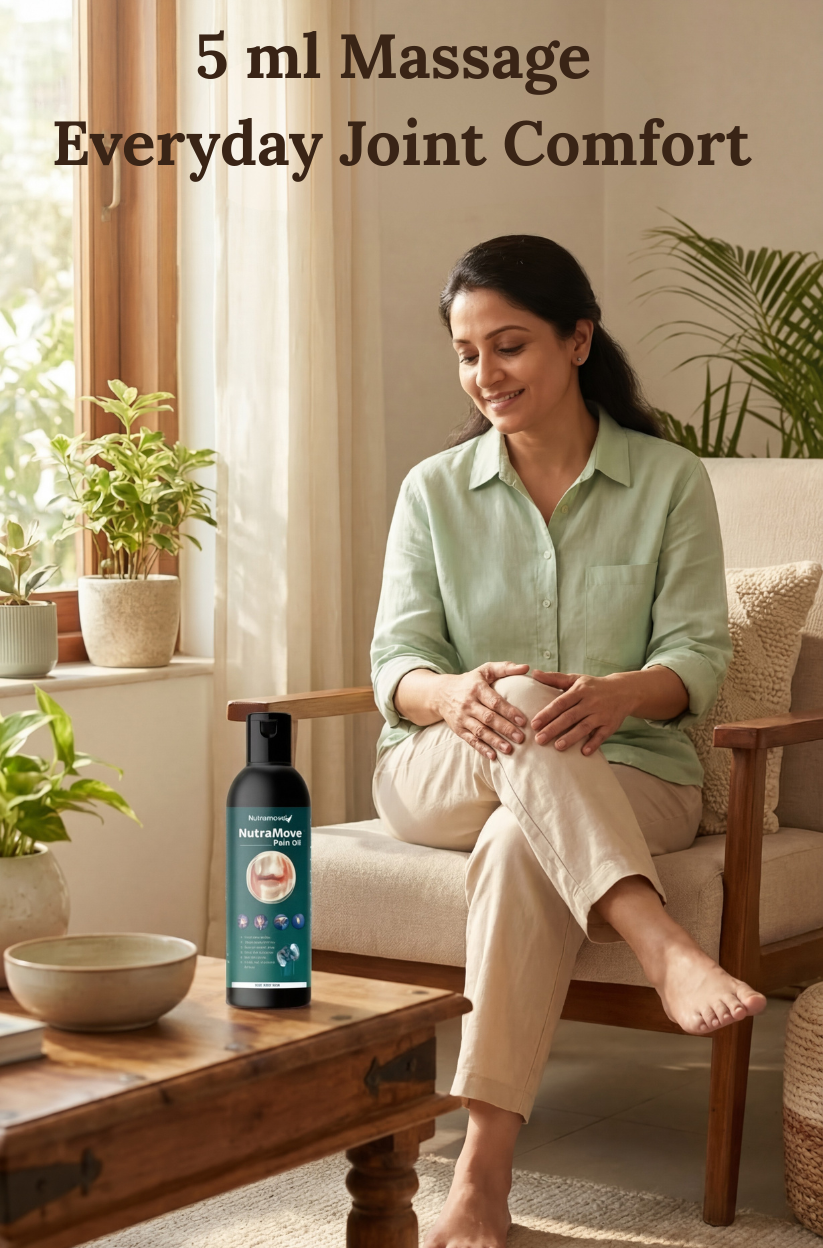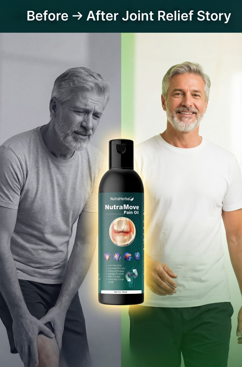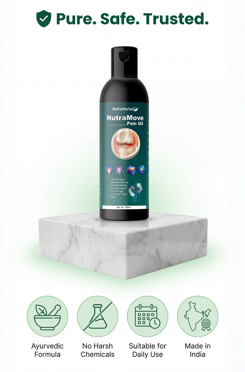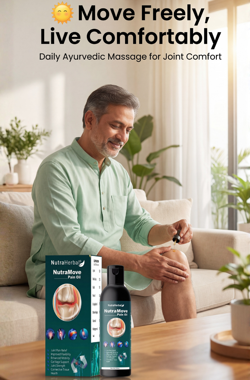 NutraHerbal NutraMove Pain Oil is a premium ayurvedic joint pain relief oil designed to support pain relief, flexibility, and joint strength naturally. Inspired by traditional Ayurveda and crafted with potent herbal oils, this pain oil helps soothe sore joints and tired muscles.