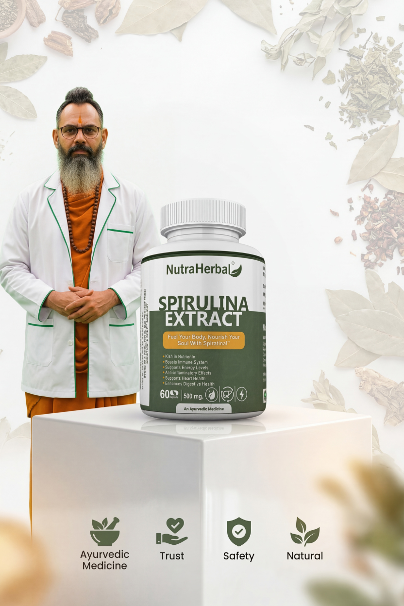 Regular use of NutraHerbal Spirulina Extract Capsules helps boost energy levels, immune strength, digestion, metabolism, and heart health, while also supporting natural detoxification by removing toxins from the body. The high chlorophyll content promotes oxygen flow and improves overall vitality.